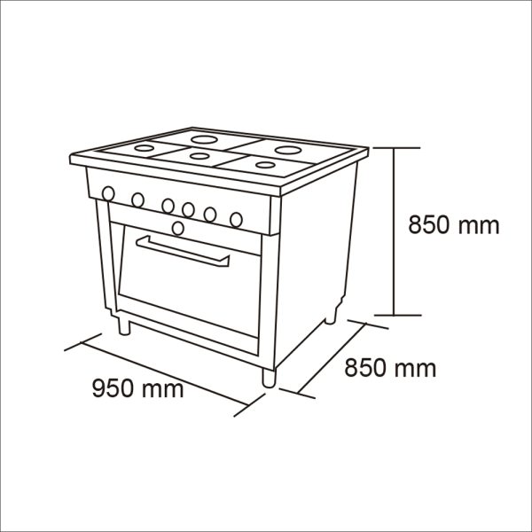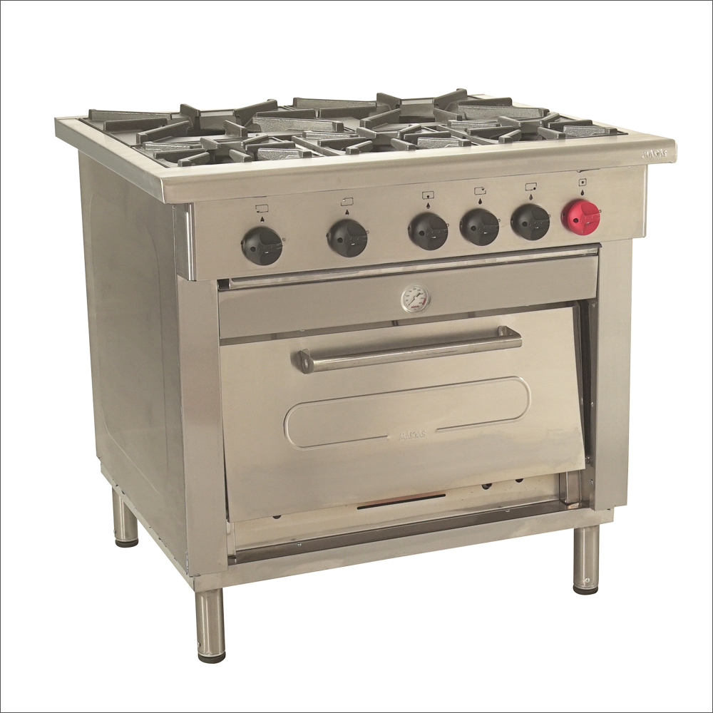 Construida íntegramente en acero inoxidable. Parrilla de fierro fundido tratado con pintura resistente a altas temperaturas. Quemadores industriales de aluminio 3 de 140 mm. y 2 de 180 mm. de diámetro Válvula de control de gas italiana con dispositivo de seguridad. Termómetro análogo de 0 a 400 ºC. Platos y bandeja de rebalse en acero inoxidable. Interior cámara horno íntegramente en acero inoxidable. 2 bandejas enlozadas de 650 x 580 mm. Certificación SEC.